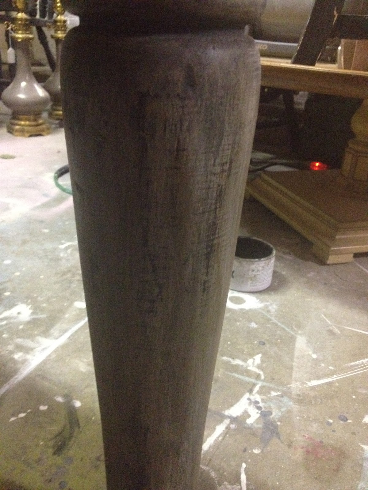 I did wet distress on the legs of this table Gena. On the top I painted it on almost full and then sanded away more.